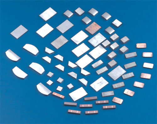 鎢銅特性:銅鎢合金綜合銅和鎢的優(yōu)點,高強度/高比重/耐高溫/耐電弧燒蝕/導(dǎo)電電熱性能好/加工性能好,采用高品質(zhì)鎢粉及無氧銅粉,應(yīng)用等靜壓成型(高溫?zé)Y(jié)-滲銅),保證產(chǎn)品純度及準(zhǔn)確配比,組織細(xì)密,性能優(yōu)異. 斷弧性能好,導(dǎo)電性好,導(dǎo)熱性好,熱膨脹小. 鎢銅應(yīng)用:1.電極材料:應(yīng)用于高硬度材料及溥片電極放電加工,電加工產(chǎn)品表面光潔度高,精度高,損耗低,有效節(jié)約. 2.觸點材料: 高中壓開關(guān)或斷路器的弧觸頭和真空觸頭,線路板焊接和電器接觸點。 3.焊接材料:埋弧焊機,氣體保護焊機焊咀,無線電電阻廠(生產(chǎn)炭膜電阻,金屬鍍膜電阻)電阻對焊機碰焊材料(銅鎢合金焊接圓盤) 4.導(dǎo)衛(wèi)材料:各種線材軋鋼,用于導(dǎo)向保護作用材料, 鎢銅主要參數(shù): 牌號 密度(g/cm3) 硬度(HB) 電阻率(UW/cm) 電導(dǎo)率(%IACS) 鎢銅W50-Cu50 11.5-11.8 105-125 3.3-3.5 49-52 鎢銅W60-Cu40 12.5-13.5 130-150 3.5-4.5 35-46 鎢銅W70-Cu30 13.8-14.2 135-160 4.5-5.5 32-39 鎢銅W75-Cu25 14.5-14.9 170-200 5.0-6.0 30-38 鎢銅W80-Cu20 15.0-15.4 210-240 4.9-5.4 30-35 鎢銅標(biāo)準(zhǔn)板料規(guī)格表:100*100 (其它尺寸需預(yù)訂)(單位:mm) 厚度 3 4 5 10 15 20 25 30 35 40 45 50 鎢銅標(biāo)準(zhǔn)圓棒規(guī)格表:長度100-300mm(其它尺寸需預(yù)訂)(單位:mm) 外徑Φ 3 4 5 6 8 10 12 15 20 25 30 35 40 45 50 55 60