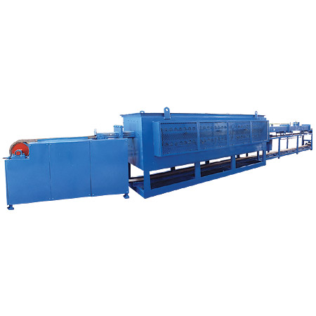 該生產線具有控制先進、節奏顯著、維修容易等特點。工件輸送采用耐高溫金屬網帶或鋼帶無級調速。全線加熱區均采用PID無觸點自動調功控制,多區控溫,保護氣源采用氨分解爐并帶氣體純化裝置配套。