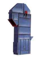TD型斗式提升機由運行部分(料斗與牽引膠帶帶有傳動滾筒的上部區段,帶有拉緊滾筒的下部區段,中間機殼,驅動裝置,逆止制動裝置等組成,適用于向上輸送松散密度ρ<1.5t/m3粉狀、粒狀和小塊狀的無磨琢性和半磨琢性散狀物料,如煤、砂、焦末、水泥、碎礦石等。