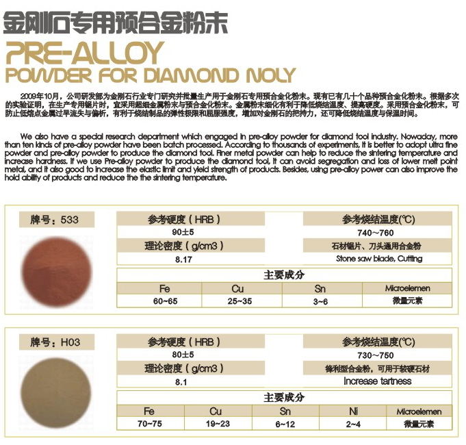 金剛石專用預合金粉末