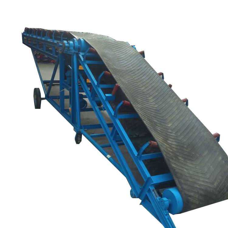可移動式皮帶輸送機適用于散糧、包糧的輸送、堆垛、裝卸車等作業。有5米、8米、10米、12米、15米、18米、20米等規格,移動式皮帶輸送機有電動、手動升降兩種型式。可移動式皮帶輸送機具有快、慢兩種速度、以適應散運、包裝的不同要求,提高了設備的利用,發揮了一機多用的性能。在移動式皮帶輸送機機架兩旁裝有旁導管,防止糧包在輸送時掉包,并在進料斗兩側裝置有調節手柄,將側板撐起、防止糧食撒漏,便于散裝糧食輸送。大、小走輪均采用實心膠輪,防止壓碎糧食和倉庫地面。大小走輪均裝有滾珠軸承、小走輪具有自動轉向的功能,保證了機器移動輕便靈活。移動式皮帶輸送機機架采用焊接的珩架結構,在包運集中載荷下有足夠的強度和良好的鋼性。