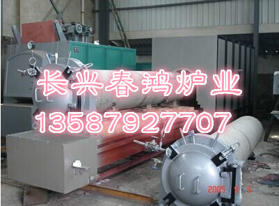 該爐爐襯全部采用全纖維構成,保溫性能相當優越。加熱室有一臺車,臺車是由擺線針輪減速機經過減速帶動行走輪移動,臺車上裝有一采用不銹鋼材料焊接而成的爐罐,爐罐里面有裝料的小車,料車進出爐罐由推拉料機構來完成,爐罐與爐罐蓋的密封采用橡膠密封圈,并在爐罐法蘭上裝有冷卻水套用來保護橡膠密封圈,爐罐開啟采用手動結構,并裝有防爆裝置,以防工作時可能發生氣體熱膨脹爆炸的現象,另還有保護氣進管、排氣管和真空裝置(包括真空泵和真空管道)。功率:105-360kw